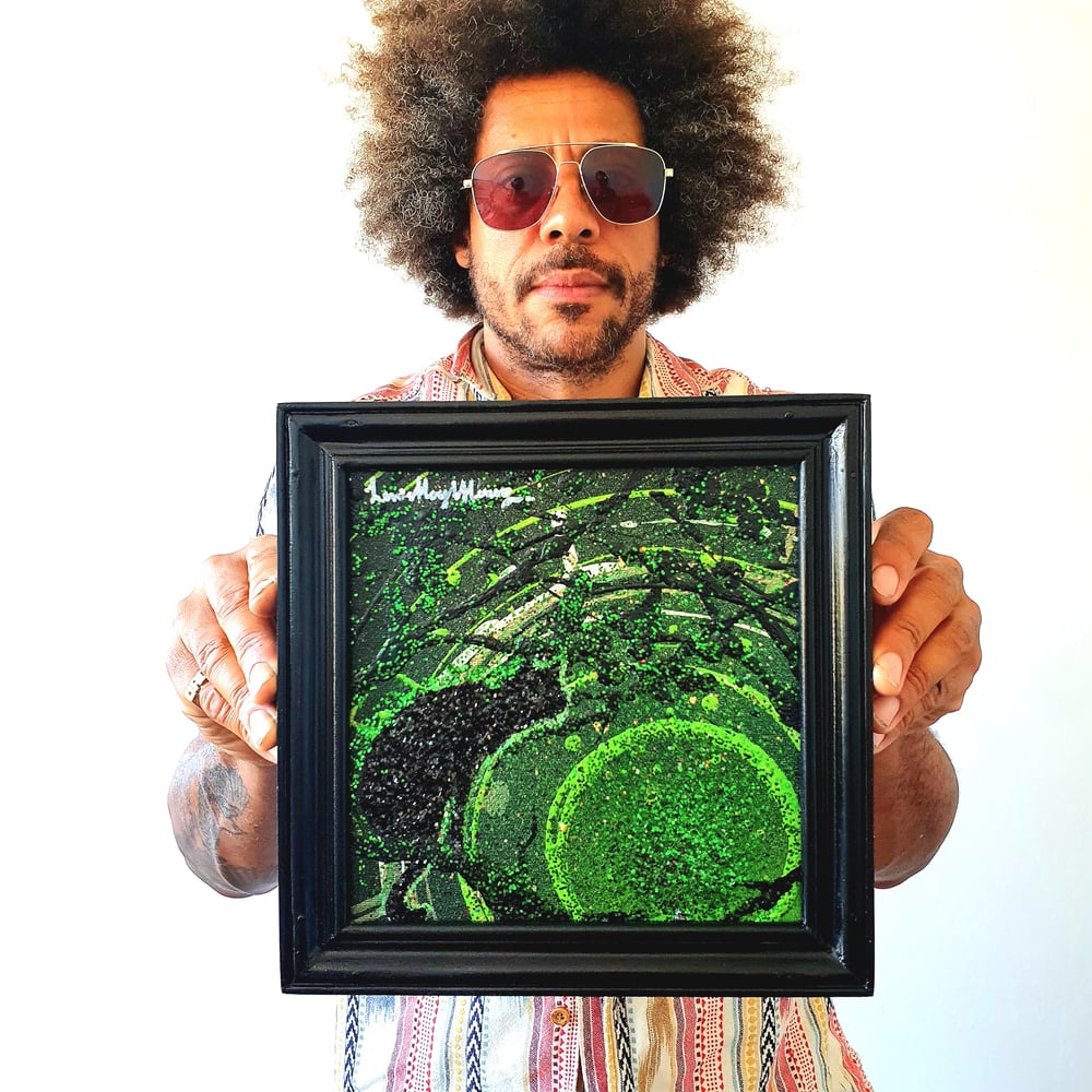Artist - Lewis Floyd Henry Title - Emerald Cat Size - 24cm x 24cm Date - 26/06/2025 Bespoke frame hand made by Lewis Floyd Henry Price £120